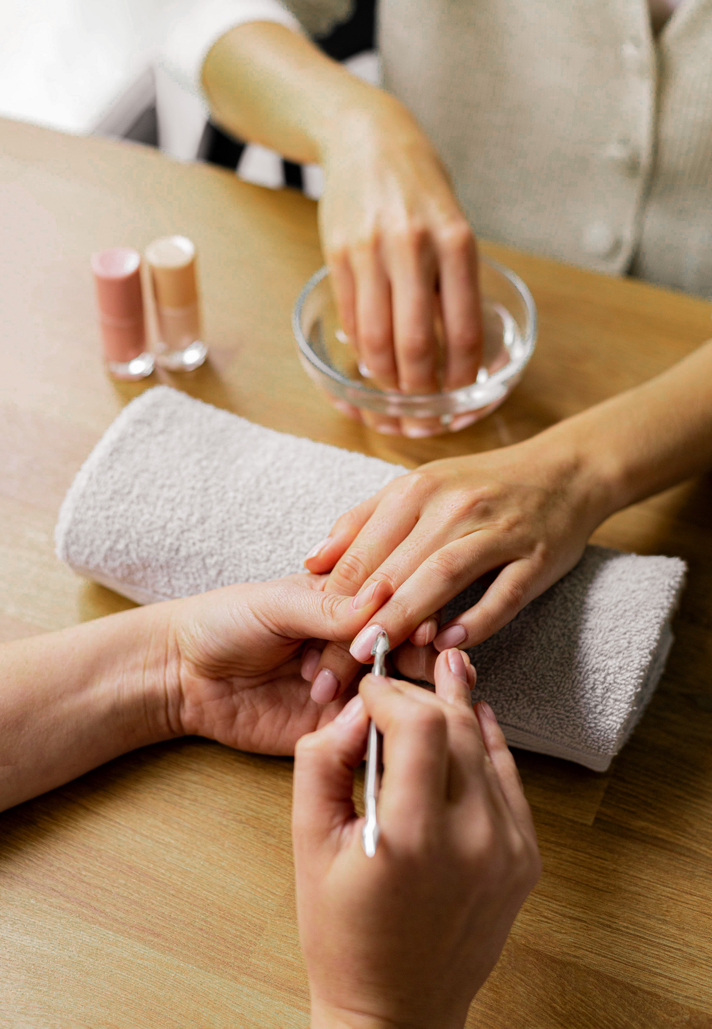 Cada detalle cuenta: desde el anillo de luz que realza tus manos hasta el fondo neutro que hace brillar tu manicura. No es solo una foto, es el recuerdo de un momento de autocuidado.